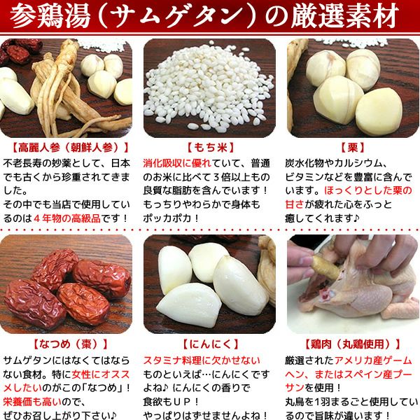 他の画像を見る モデルのアンミカさんも絶賛!完全手作り・無添加のサムゲタン!(アメリカ産ゲームヘンまたはスペイン産プーサン使用)[スピード便対応] サムゲタン:参鶏湯 [ 手作り 無添加 サンゲタン ] 当店特別価格 ¥ 3,240 税込 詳細を見る お気に入りに登録する