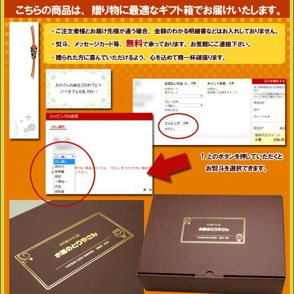 他の画像を見る 世界初!1本で12種類の部位が楽しめるフルコース焼き鳥! 【送料無料】TV・雑誌で話題!!水郷どりまるごと一本(6本・贈答箱入り) 当店特別価格 ¥ 5,400 税込 カートに入れる お気に入りに登録する