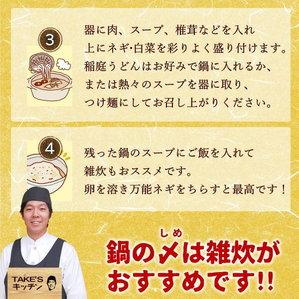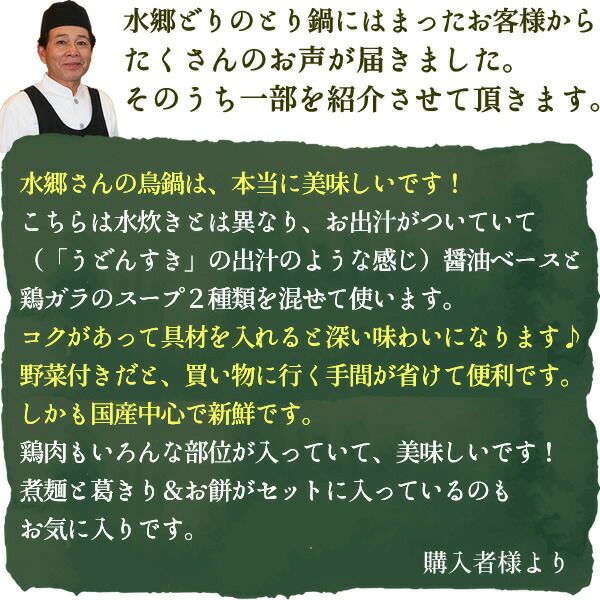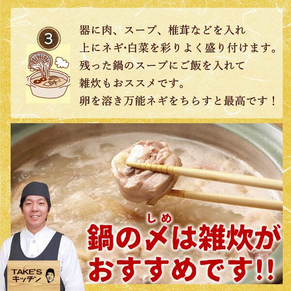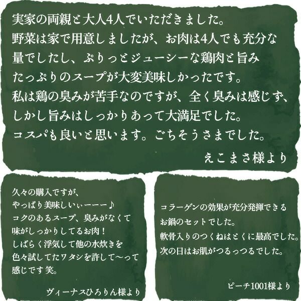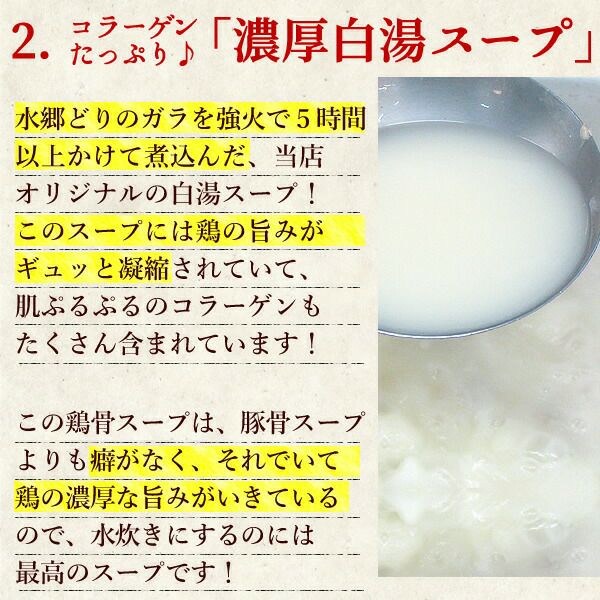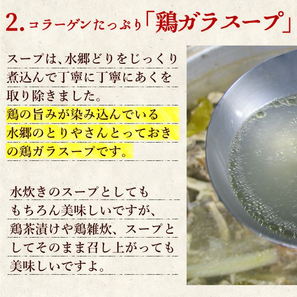 鍋のスープとしてももちろん美味しいですが、鶏茶漬けや鶏雑炊、またスープとしてそのまま召し上がっても鶏の美味しさを感じられる最高の美味しさです。