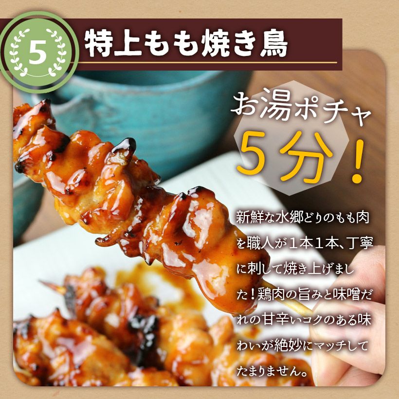 他の画像を見る お湯ポチャ5分で焼きたての美味しさ!お得なおすすめ焼き鳥(やきとり)セットをお試しください! 【 送料無料 】オススメ 焼き鳥 10本セット[ 2本入×5種類 ]!![ 鶏肉 国産 調理済み ] 当店特別価格 ¥ 2,780 税込 カートに入れる お気に入りに登録する