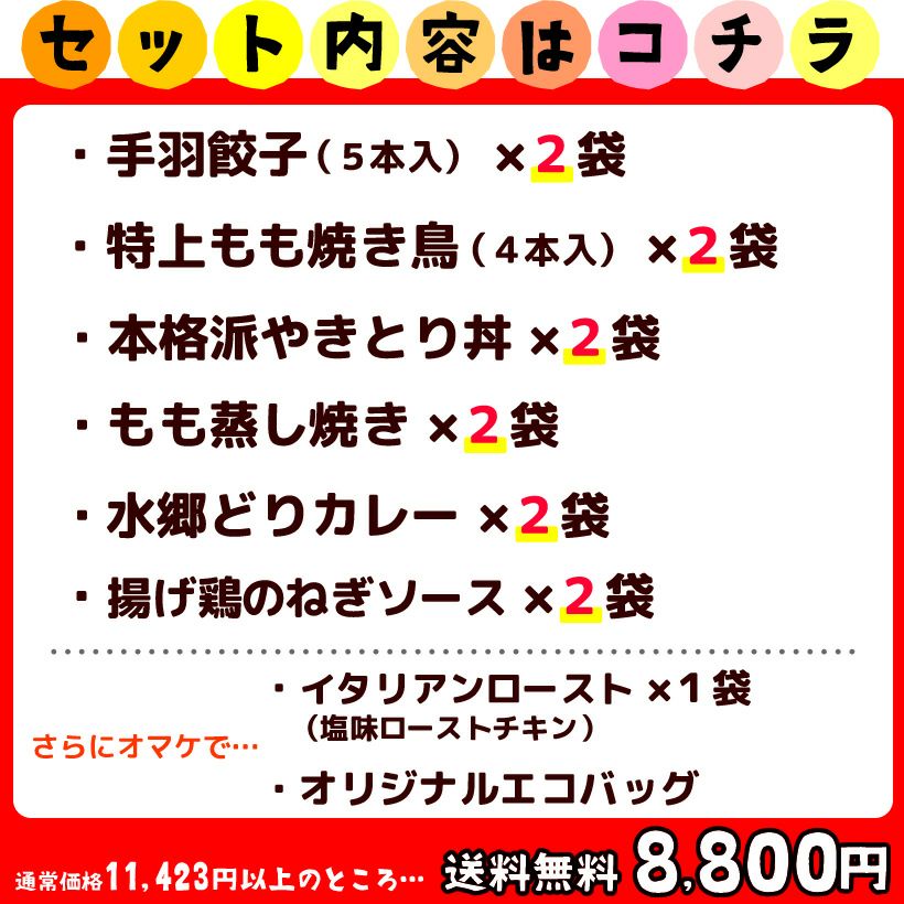 他の画像を見る 【10月3日(火)までの期間限定】水郷どりの美味しさを「主婦休みセット」でお得に試すチャンス! 【送料無料】主婦休みセット 当店特別価格 ¥ 3,980 税込 詳細を見る お気に入りに登録する