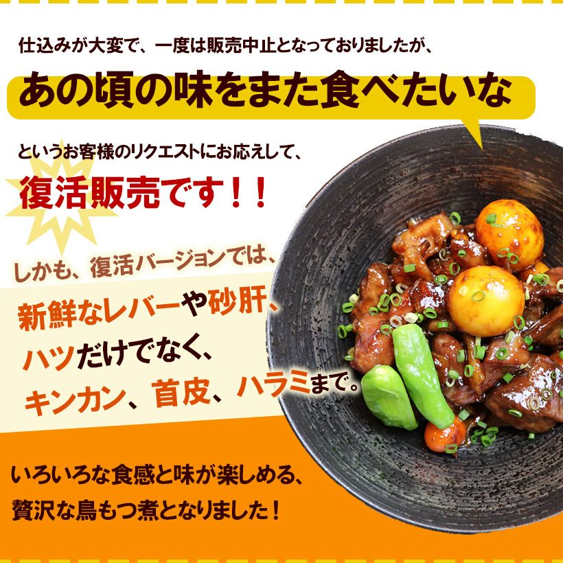他の画像を見る 二代目の時代に販売していた「鳥もつ煮」が当時の味を再現して復活!水郷どりのレバーやハラミ、砂肝などを贅沢に使い、秘伝ダレで味付けした自慢の逸品です! 鳥もつ煮込み[ 2-3人前 1袋 約330g ]【 モツ煮 モツ煮込み おつまみ きんかん キンカン ハラミ レバー 砂肝 砂ずり ハツ B級グルメを超えた美味しさ 】 当店特別価格 ¥ 842 税込 カートに入れる お気に入りに登録する