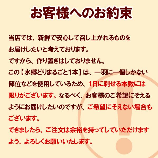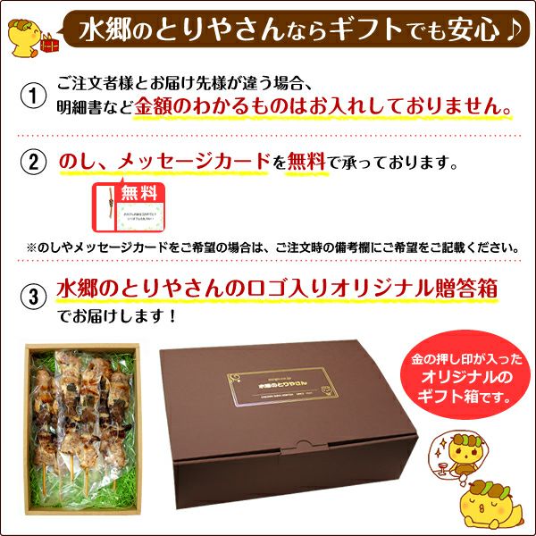 こんにちは、水郷のとりやさんの須田です。家で焼き鳥を焼くのは大変ですよね!! そこで、焼き鳥の自宅へのお取り寄せ・通販なら水郷のとりやさんにお任せ!! お湯ポチャ5分でお家で焼きたての美味しさが楽しめる専門店の焼き鳥がお取り寄せできちゃうんです!! しかも、その焼き鳥は、当店のベテランの職人が1本1本、丁寧に串打ちし、秘伝のタレやこだわりの塩で焼き上げた焼き鳥ッ!! 鶏肉・焼き鳥の専門店ですので、他では味わえない貴重な部位の焼き鳥など、種類も豊富に焼き鳥が自宅にお取り寄せできちゃいます♪ ※バーベキューなどに最適な【生】の焼き鳥(串もの)のお取り寄せはこちらから |