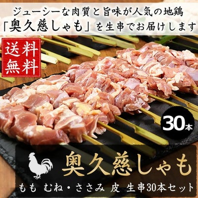 【送料無料】奥久慈しゃも 焼き鳥 生串30本セット 【生・冷凍】 [もも串10本 胸ささみ串10本 皮串10本 ] 奥久慈軍鶏 焼き鳥 やきとり 串もの バーベキュー BBQのレビューを書く