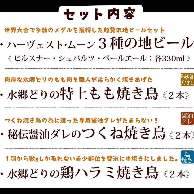 他の画像を見る 【送料無料】イクスピアリで人気のクラフトビールと当店人気の焼き鳥をセットにした父の日焼き鳥&地ビールギフト! 【送料無料】地ビール3本&焼き鳥3種6本ギフトセット 冷蔵限定 当店特別価格 ¥ 3,980 税込 在庫切れ 詳細を見る お気に入りに登録する