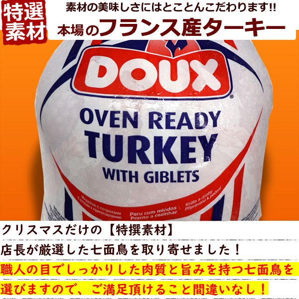 他の画像を見る 【 送料無料 】 フランス産 Aクラス 七面鳥 ターキー 約2.0kg≪未調理品・生・冷凍≫[クリスマスチキン] 冷凍限定 当店特別価格 ¥ 6,480 税込 在庫切れ 再入荷お知らせ お気に入りに登録する